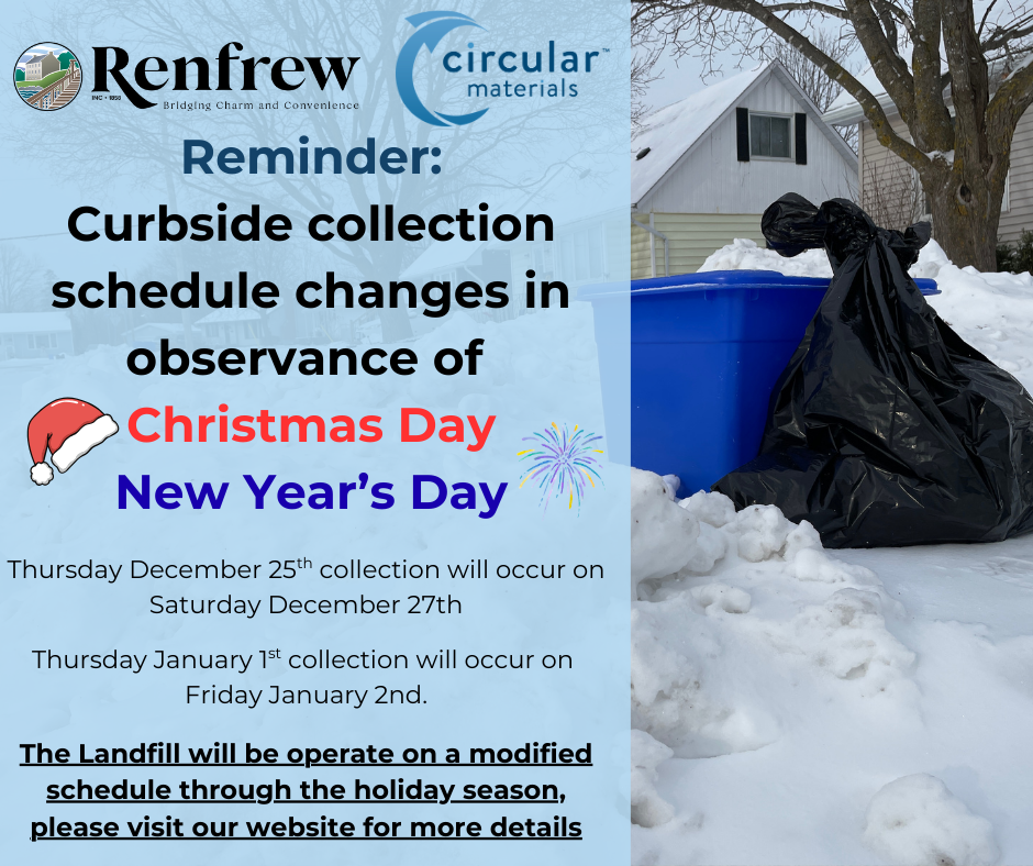 Thursday collection affected due to Christmas/Boxing Day and New Year's Day