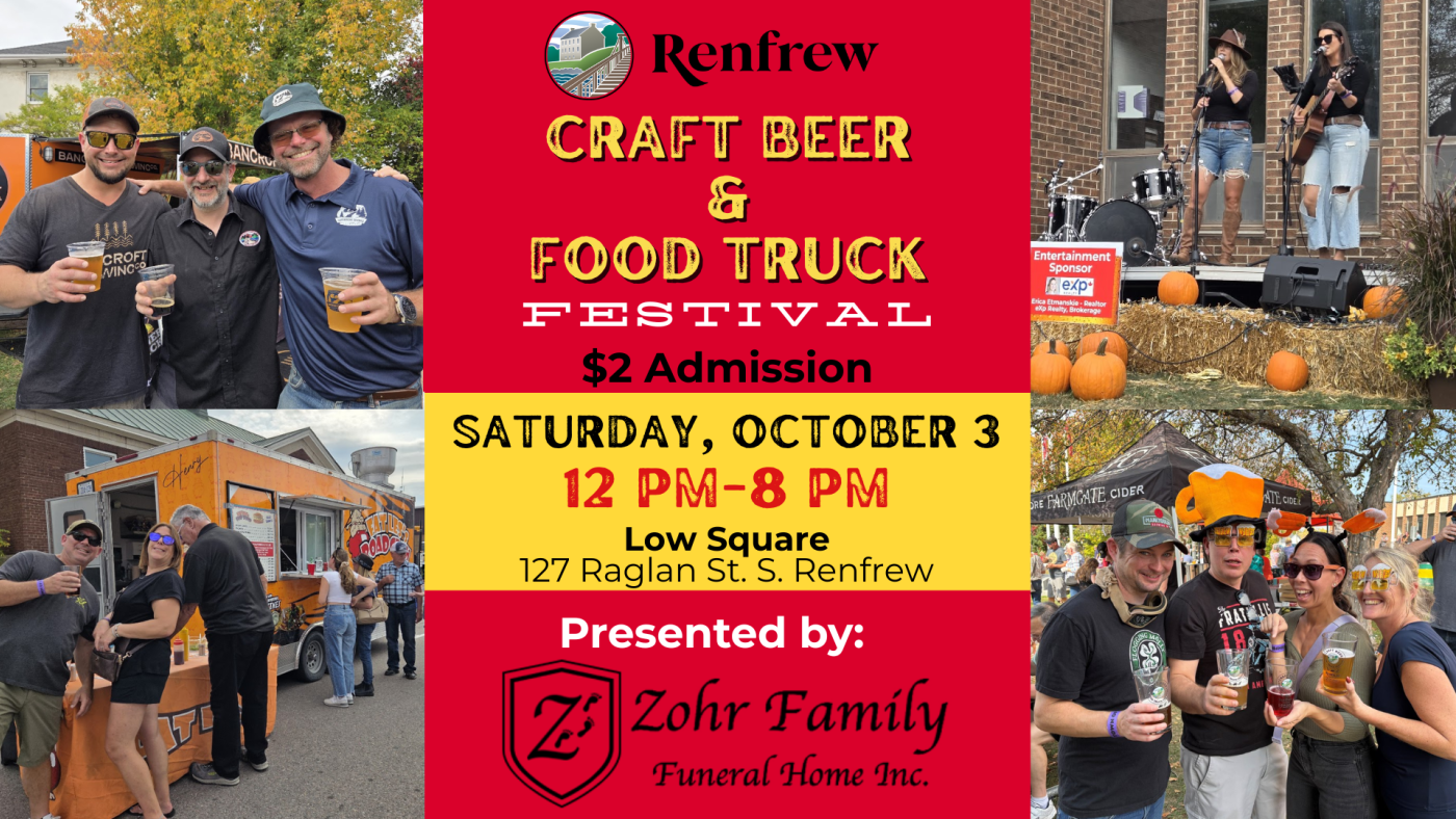 The Town of Renfrew Craft Beer and Food Truck Festival, proudly presented by Zohr Family Funeral Home Inc. is a highly anticipated annual event that brings the community together to celebrate great food, local craft beverages, and live entertainment. Held Downtown Renfrew in Low Square, the festival offers a lively atmosphere featuring a variety of craft breweries, food trucks, and musicians, making it a must-attend experience for residents and visitors alike.